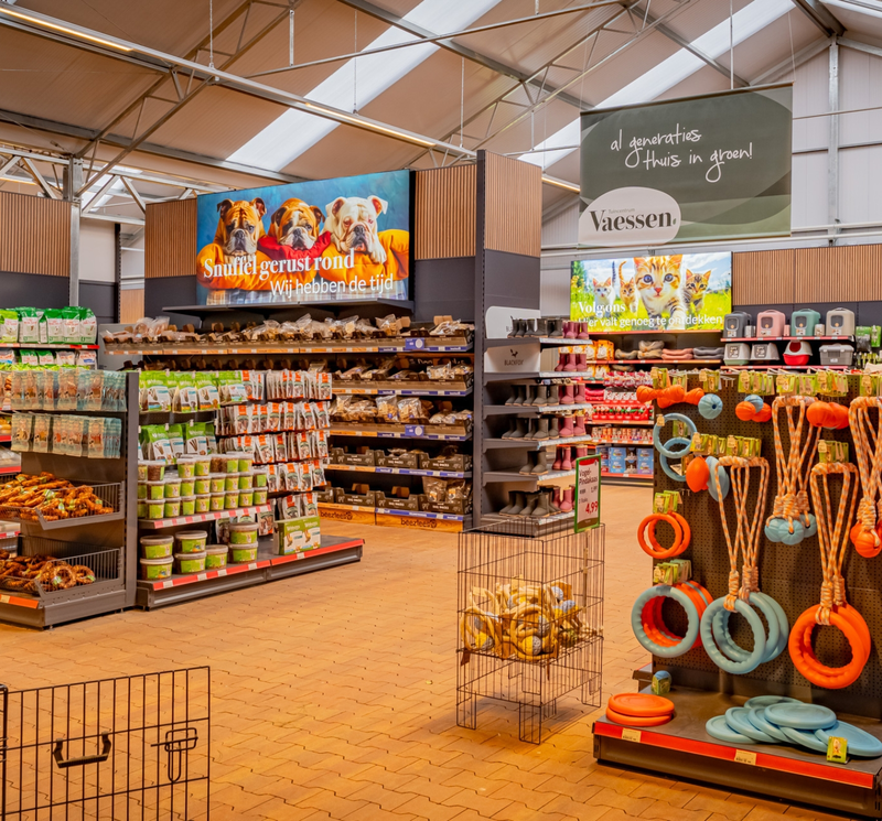 In de dierenwinkel van Tuincentrum Vaessen vind je alles wat je nodig hebt voor een gezond, vrolijk en comfortabel leven van je huisdieren. Of je nu langskomt voor dagelijks dierenvoer, een nieuw speeltje of een fijn hok, je ontdekt hier altijd een uitgebreid en zorgvuldig samengesteld assortiment. We helpen je graag bij het maken van de juiste keuze voor jouw dier.